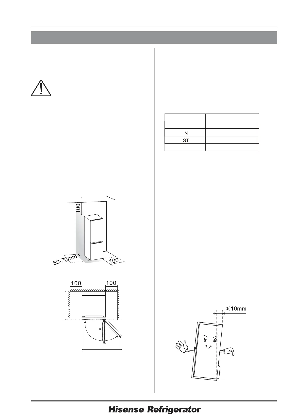 genügend Freiraum um den Kühlschrank
