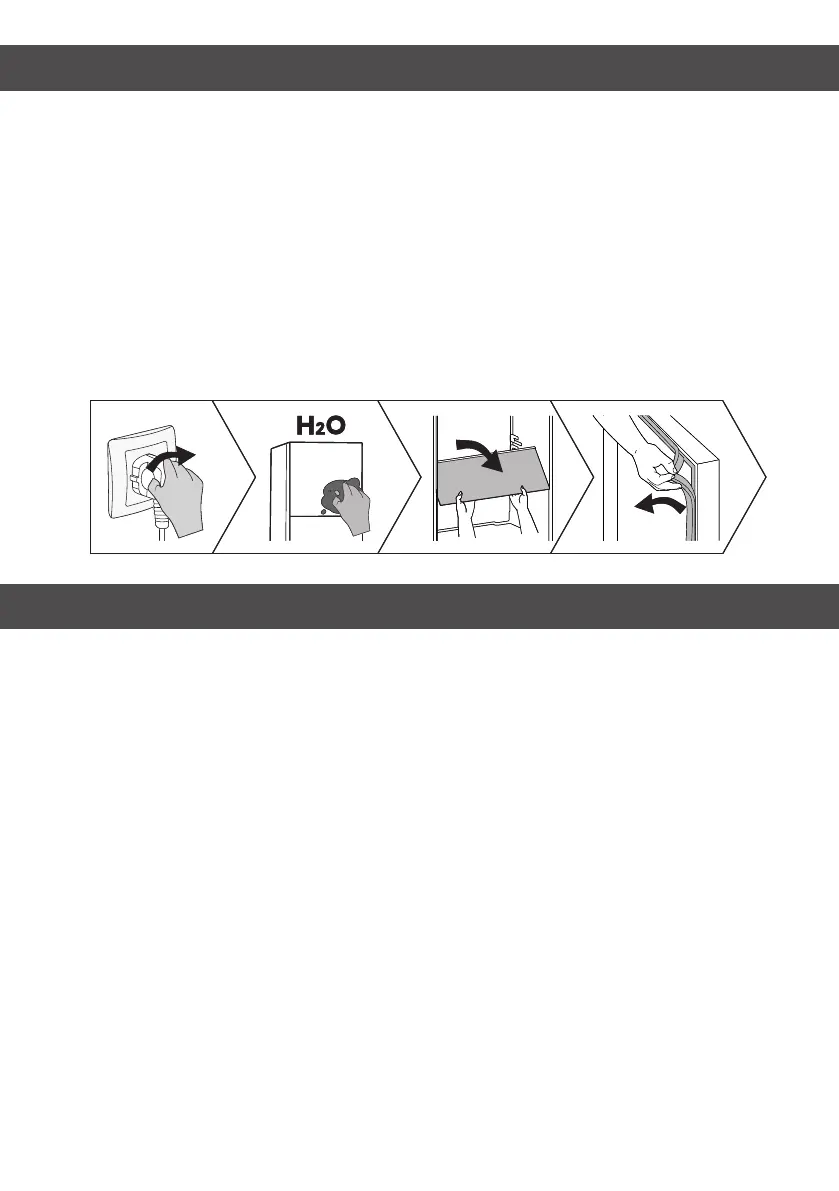• Wipe the inside of the appliance with a weak solution of bicarbonate of soda, and