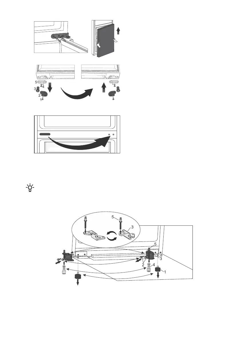 unscrew the cap (5). Rotate the hinge (3) by 180° and refasten the cap (5) and the extra foot (4).