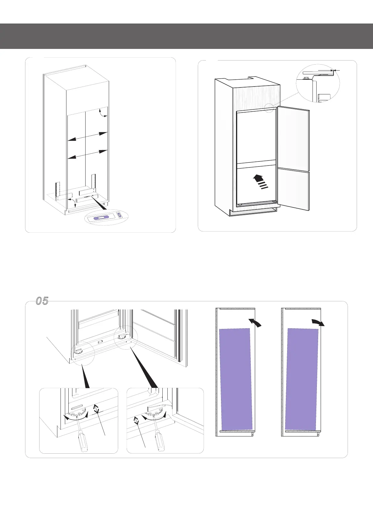 Når køleskabet vippes fremad eller bagud, skal du dreje de justerbare fødder for at justere.
