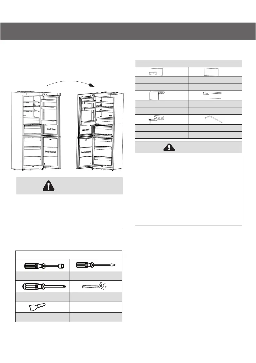 1. Stil køleskabet oprejst, åbn døren,