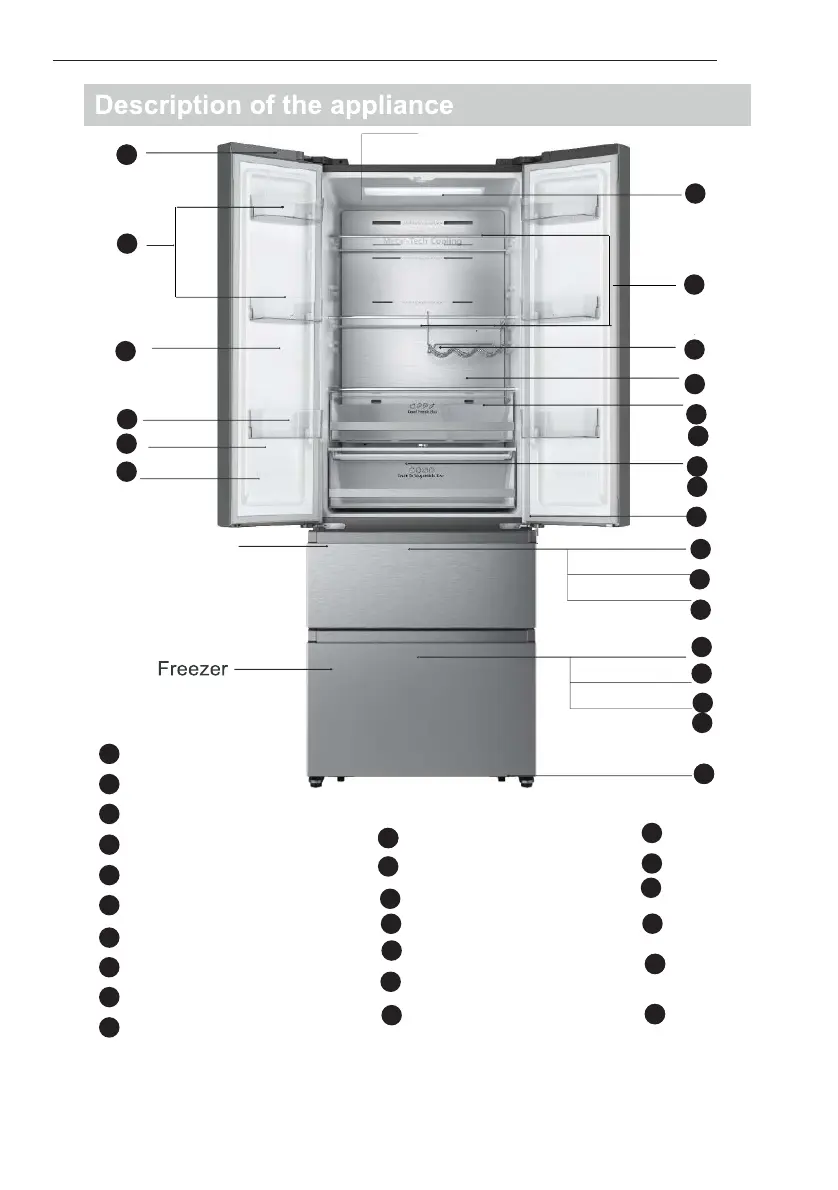 Note: To get the best energy efficiency of this product, please place all shelves, drawers on