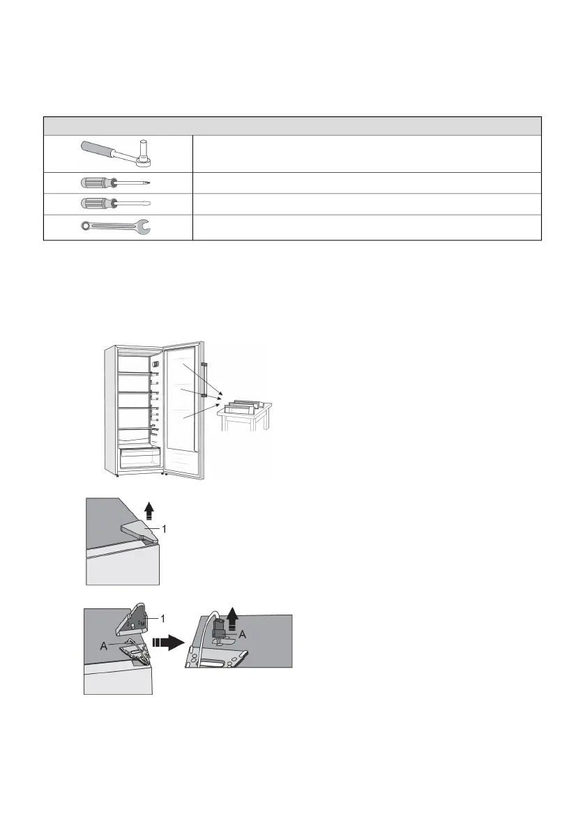 Note: Disconnect the appliance from the power mains before reversing the door opening direction.