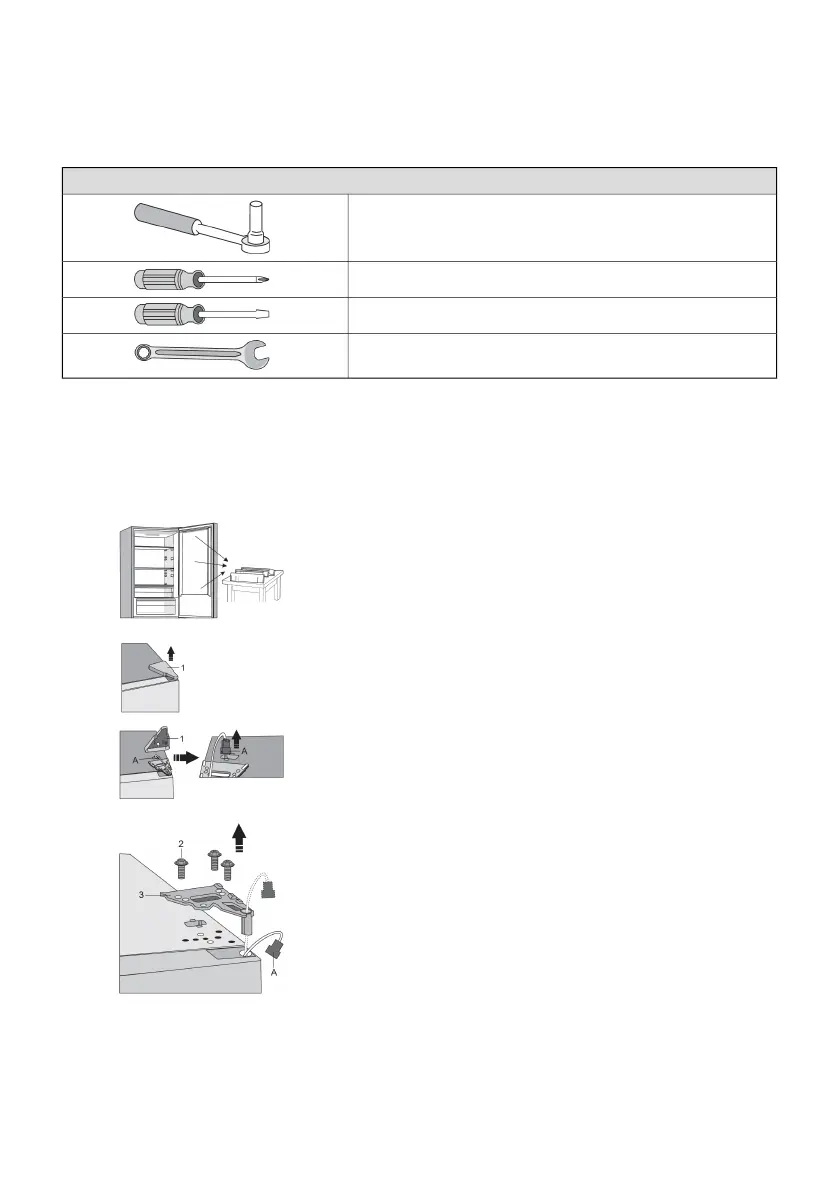 Note: Disconnect the appliance from the power mains before reversing the door opening direction.