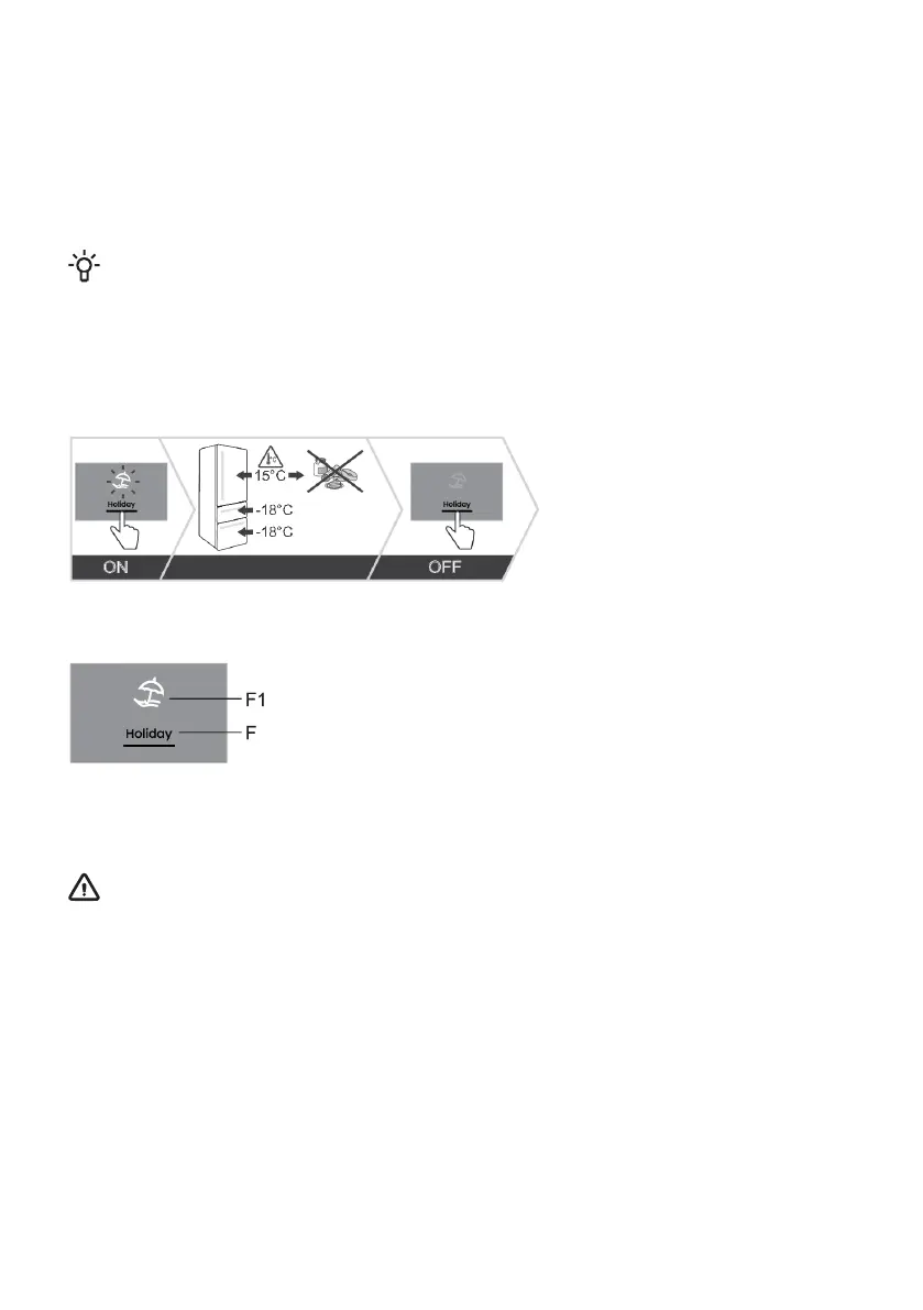 Before activating this function, empty the refrigerator compartment, as any perishables left in