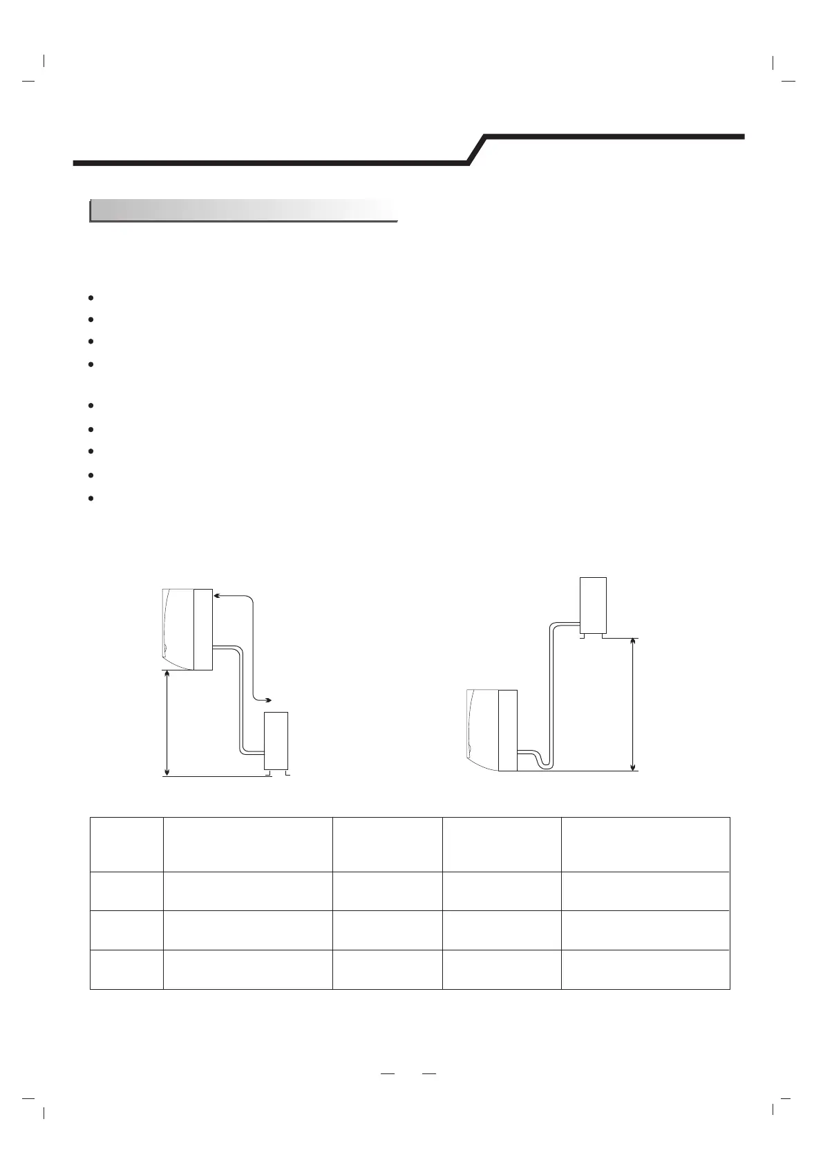 The pipe length between indoor and outdoor unit should be notmore than 5 meters in factory default