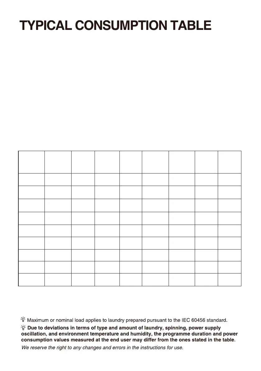 This may aect the washing results adversely.