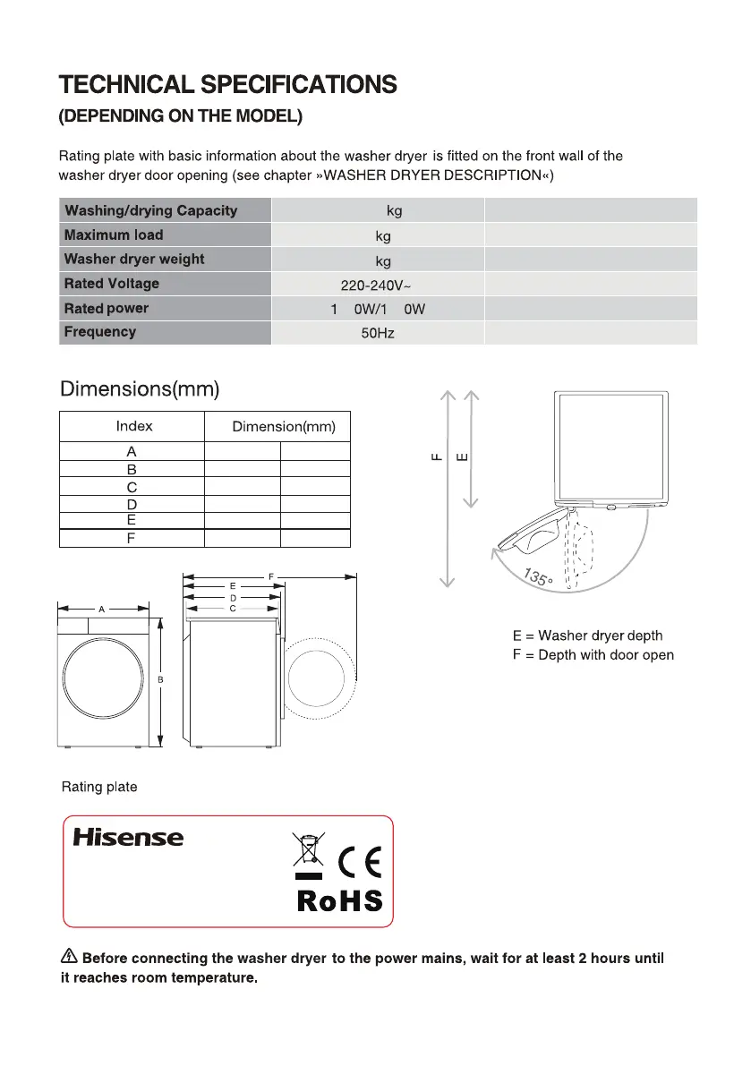 Bekijk gratis de handleiding van Hisense WD3S9043BB3, stel vragen en lees de antwoorden op veelvoorkomende problemen, of gebruik onze assistent om sneller informatie in de handleiding te vinden of uitleg te krijgen over specifieke functies.