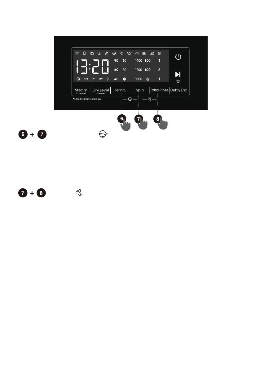+Extra Rinse" buttons for 2 seconds, The display will show mute function icon.