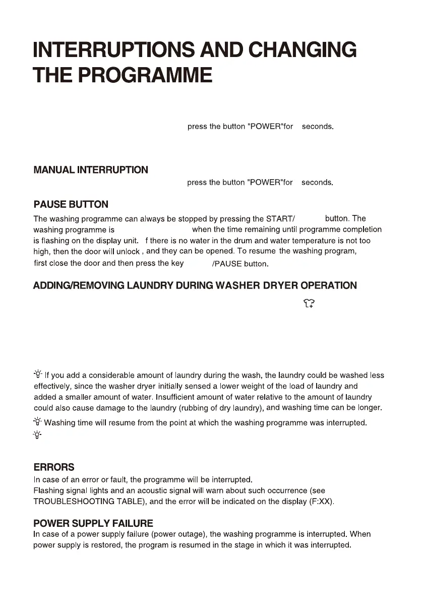 During a pause, the time on the display will blink. If the "Add Clothes" icon " " lights up, it