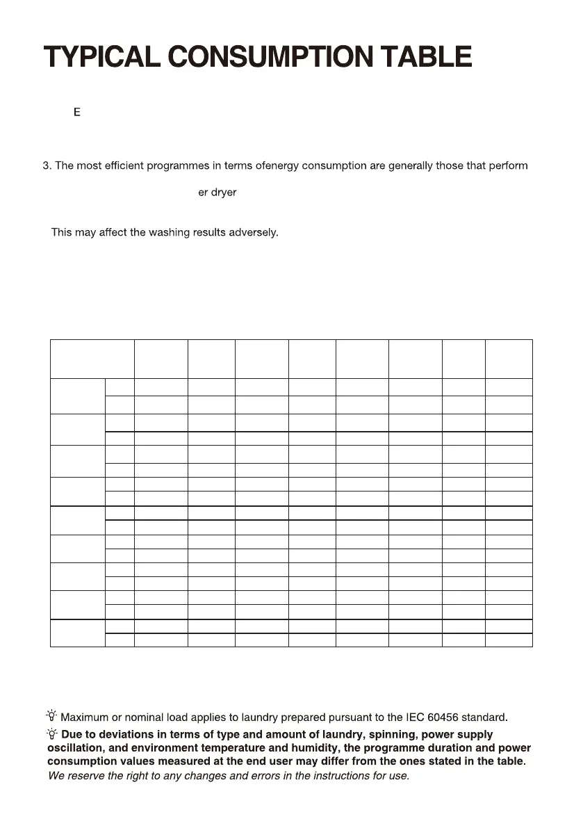 The values given for programmes other than the Eco 40-60 programme and the wash and dry cycle
