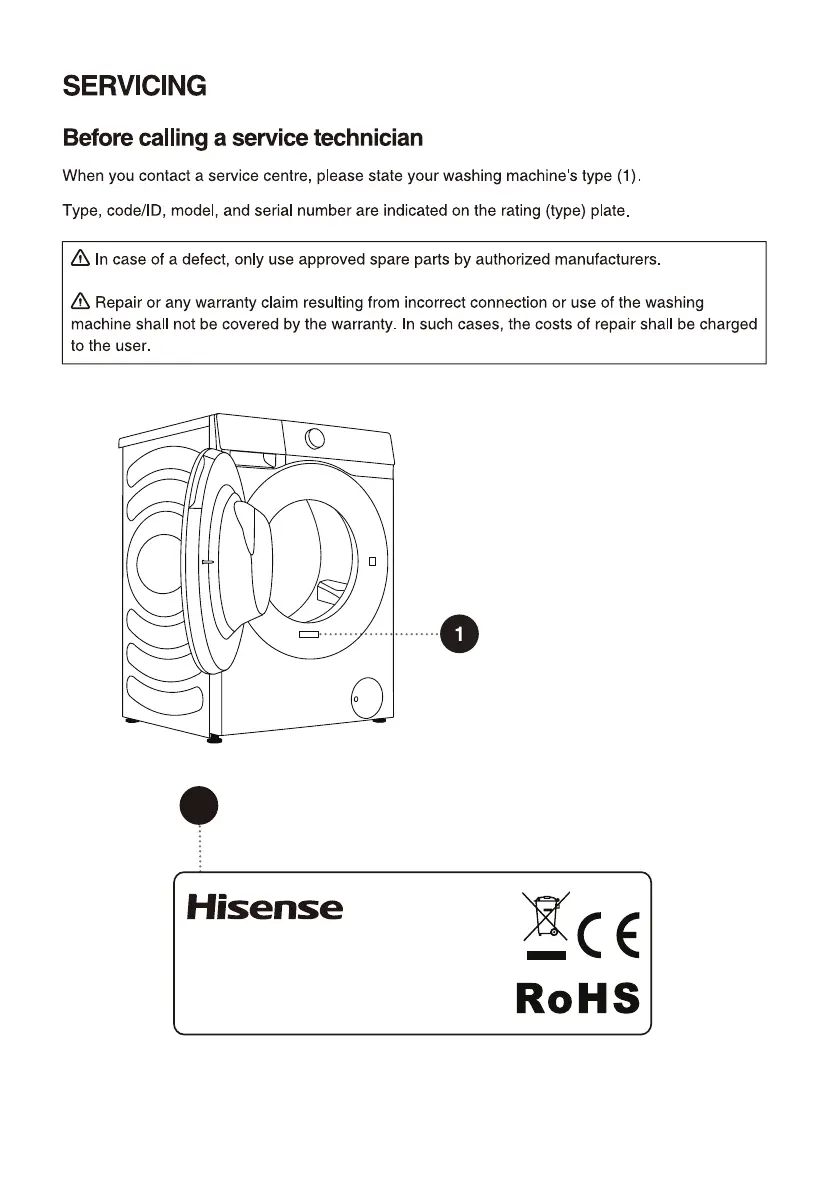 Bekijk gratis de handleiding van Hisense WF1Q8041BW, stel vragen en lees de antwoorden op veelvoorkomende problemen, of gebruik onze assistent om sneller informatie in de handleiding te vinden of uitleg te krijgen over specifieke functies.