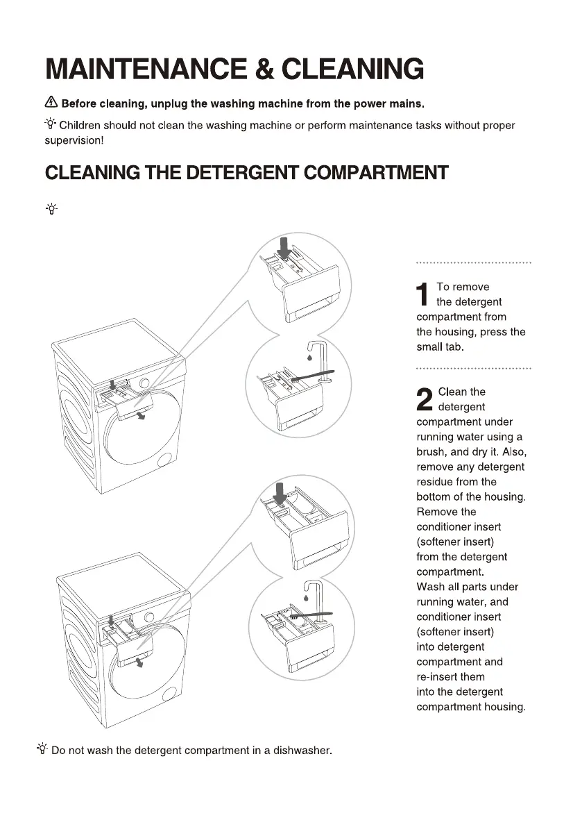 Clean the detergent compartment regularly.