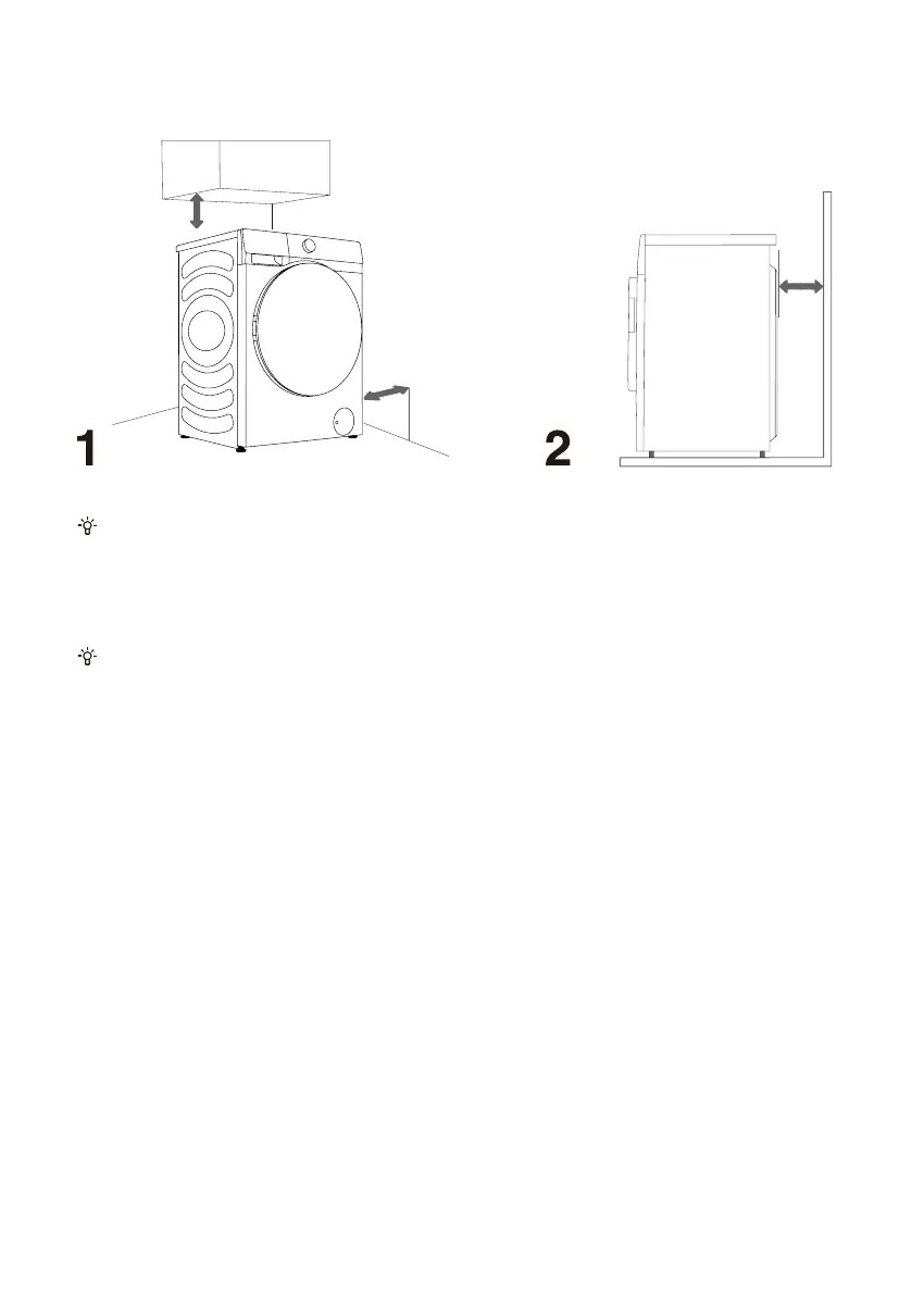 De machine mag geen muren of meubels raken. Laat voor een optimale werking van de