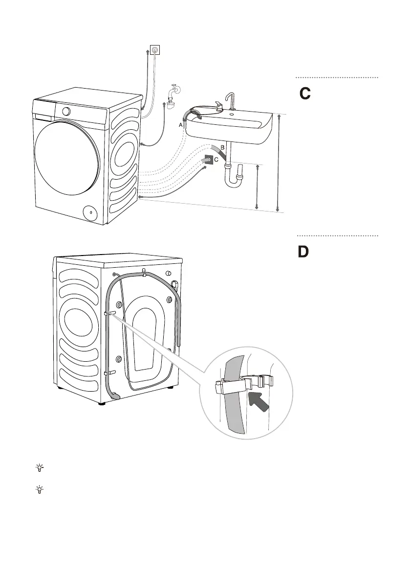 De afvoerslang niet juist installeren, kan leiden tot onveilige of abnormale werking van de