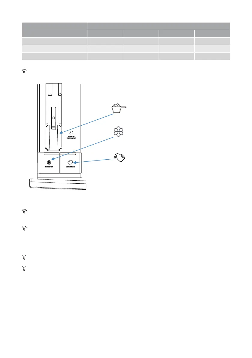 wasverzachter. U kunt automatische dosering selecteren of handmatig wasmiddel toevoegen.