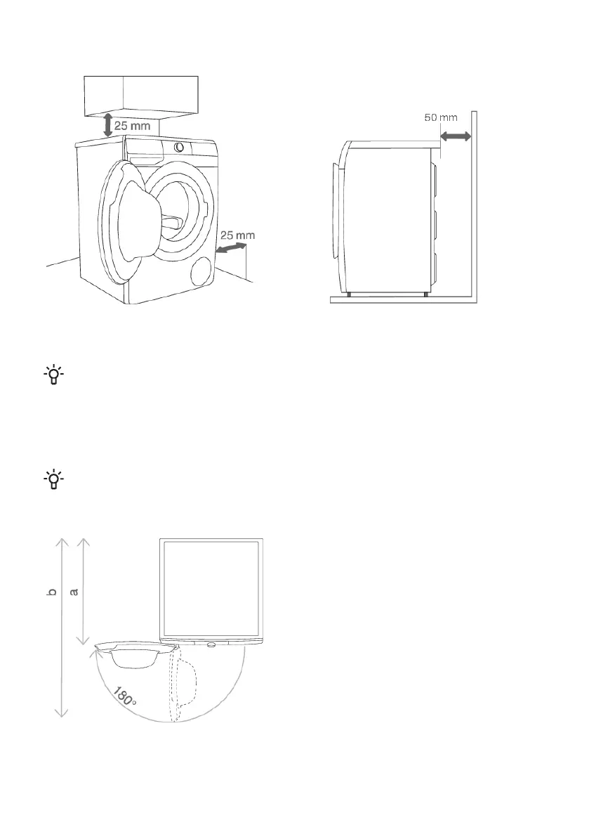 De wasmachine mag de muur of aangrenzende elementen niet raken. Voor een optimale werking