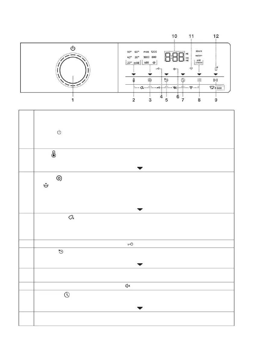 Wasmachine AAN/UIT en PROGRAMMAKEUZEKNOP.