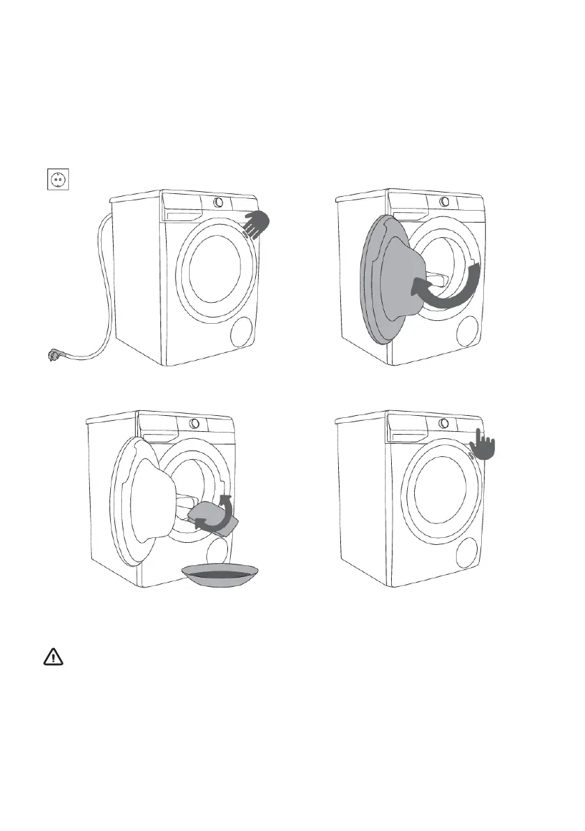 Zorg ervoor dat de wasmachine is losgekoppeld van het elektriciteitsnet en open vervolgens de deur
