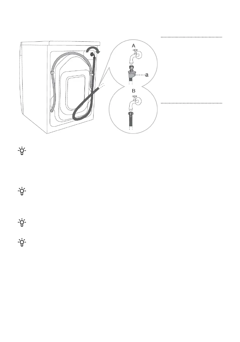 When connecting the water supply hose, make sure to connect it in a way that allows adequate