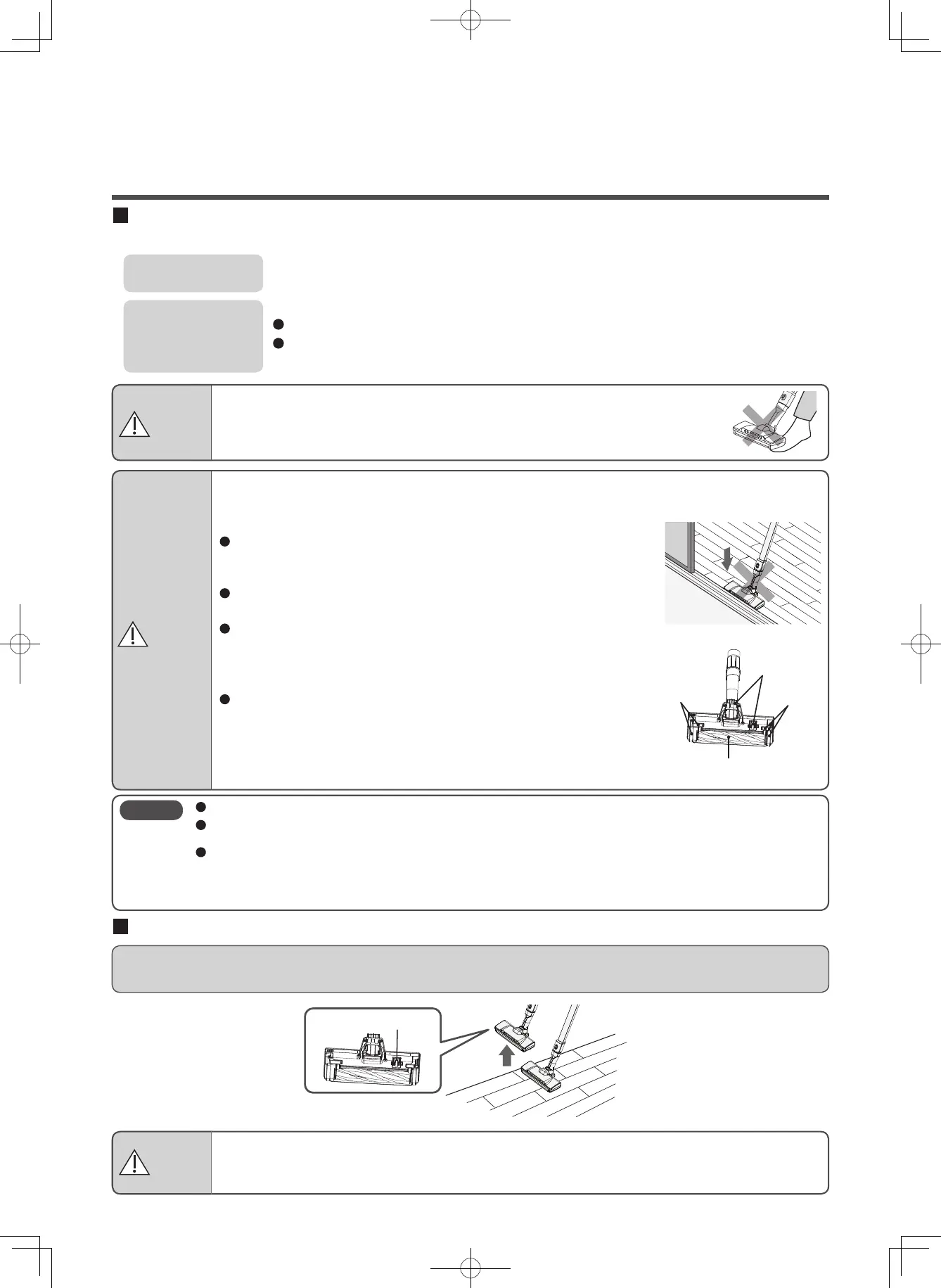The vacuum cleaner might be difficult to use depending on the floor type. In such a case, switch to the “Standard” operation.