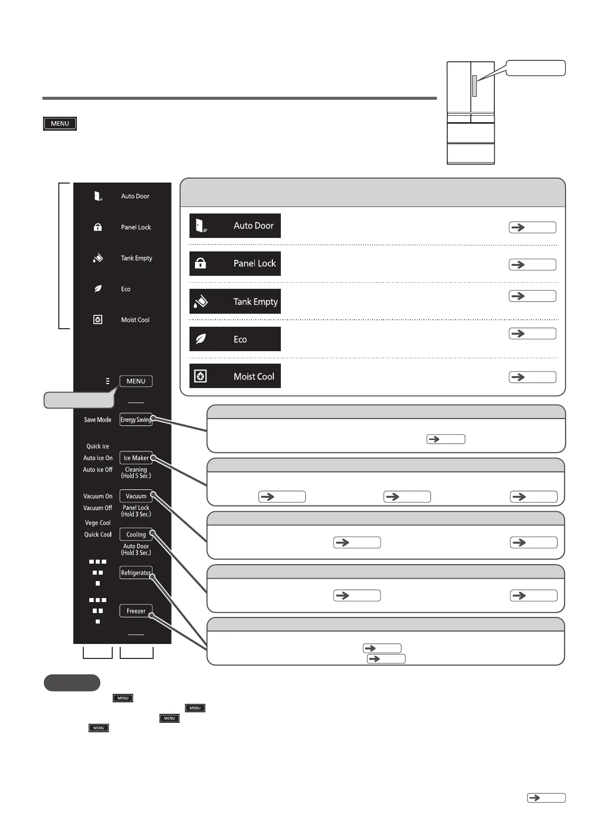 Khi cửa ngăn lạnh mở, Phần hiển thị và Phần điều khiển sẽ sáng lên. Trong trường hợp này, đèn sẽ tắt sau khoảng 15 giây từ lúc cửa đóng.
