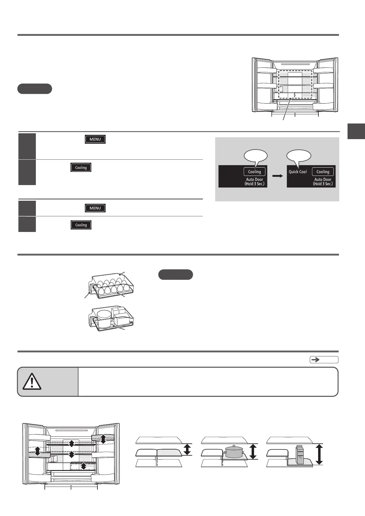 Khi bạn muốn làm lạnh thực phẩm nhanh chóng, hãy vận hành tăng cường làm lạnh cho “Không gian làm lạnh ẩm”.