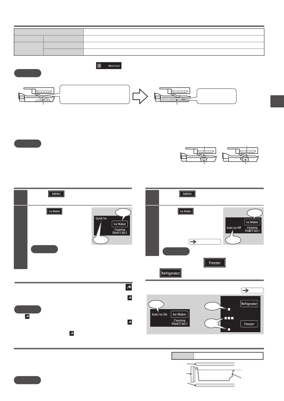 When “Auto Ice On” or “Quick Ice” is set, do not put anything other than ice made by the automatic ice