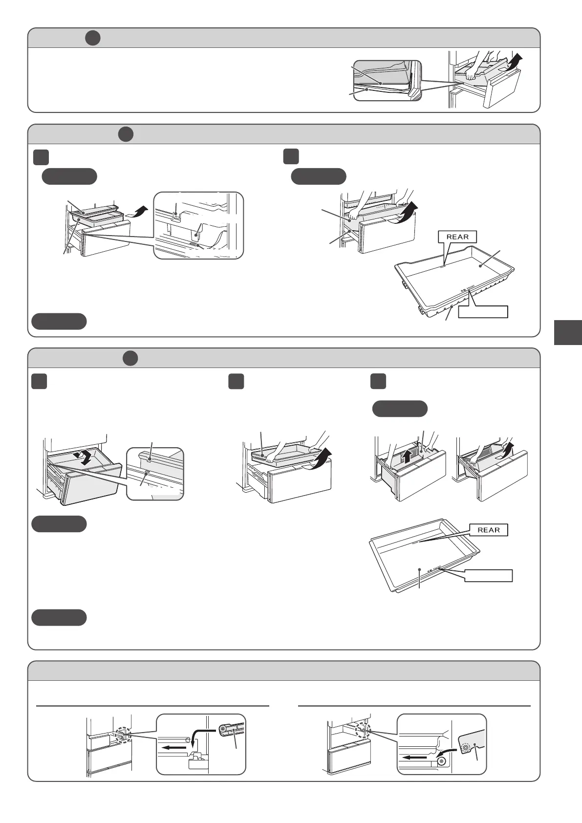 How to remove/attach the slide door (Ice Compartment/Upper Freezer/Lower Freezer/Vegetable Compartment)