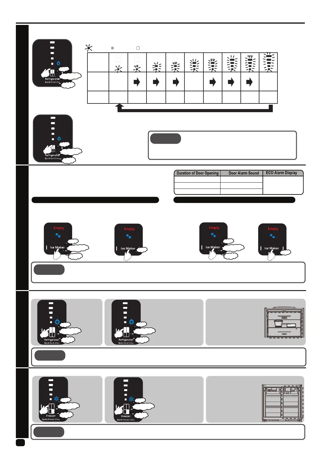 ● During "Quick Freezing", priority cooling of the freezer compartment will be done,Thus, try to avoid unnecessary opening