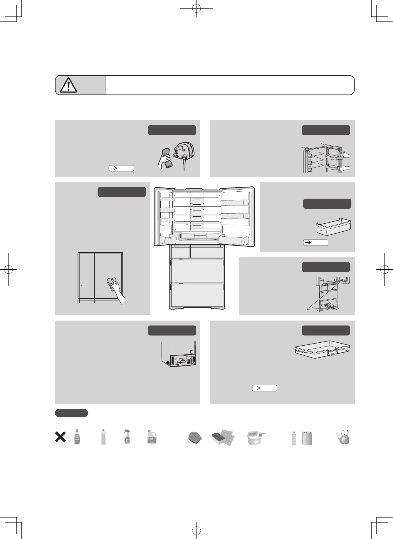 食品液汁時,請務必擦乾淨。因為其可能引發箱門、漆面與塑膠部件的損傷與變色。