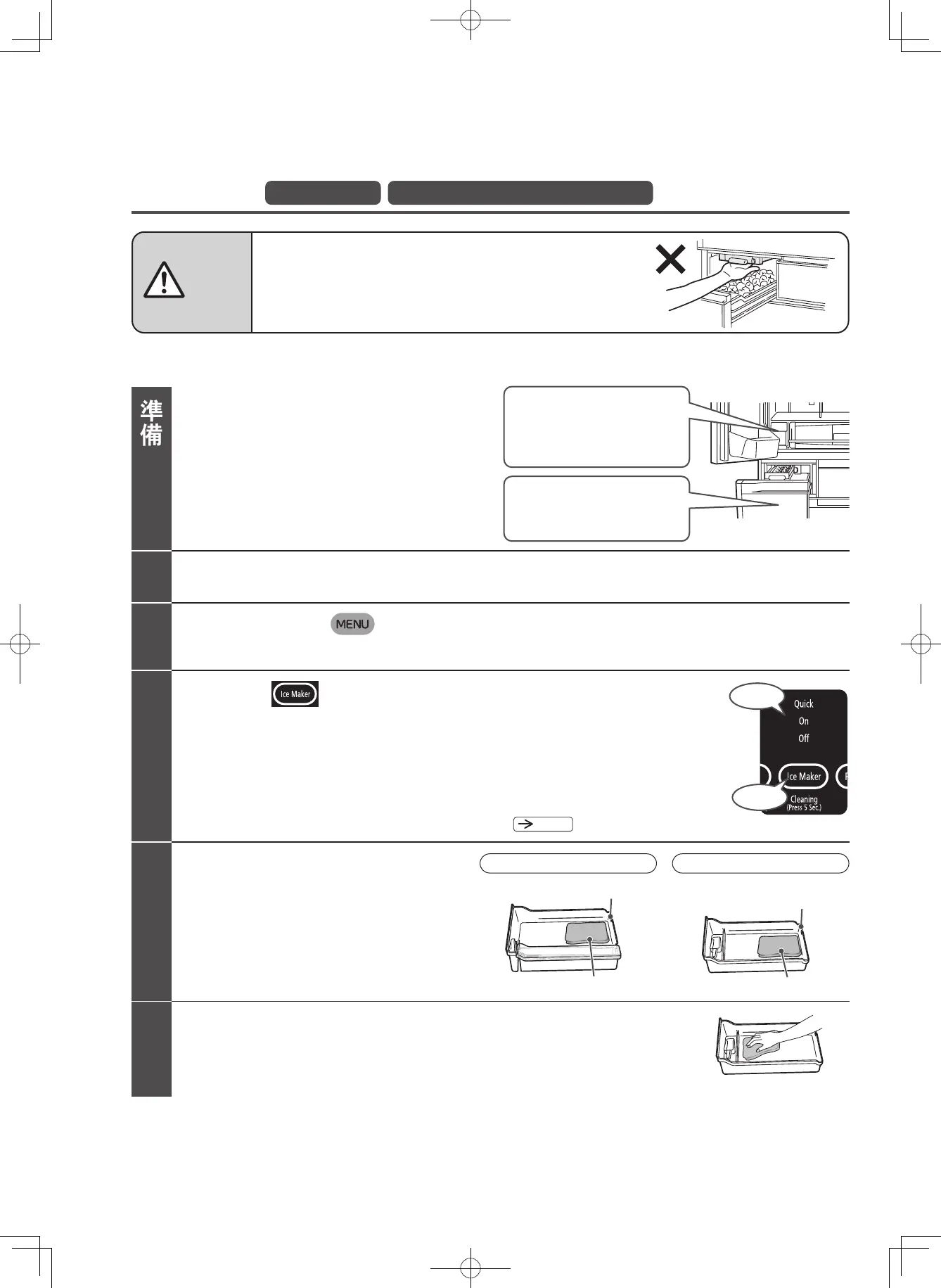 請在製冰機清潔運作結束之前不要開啟冰箱門。