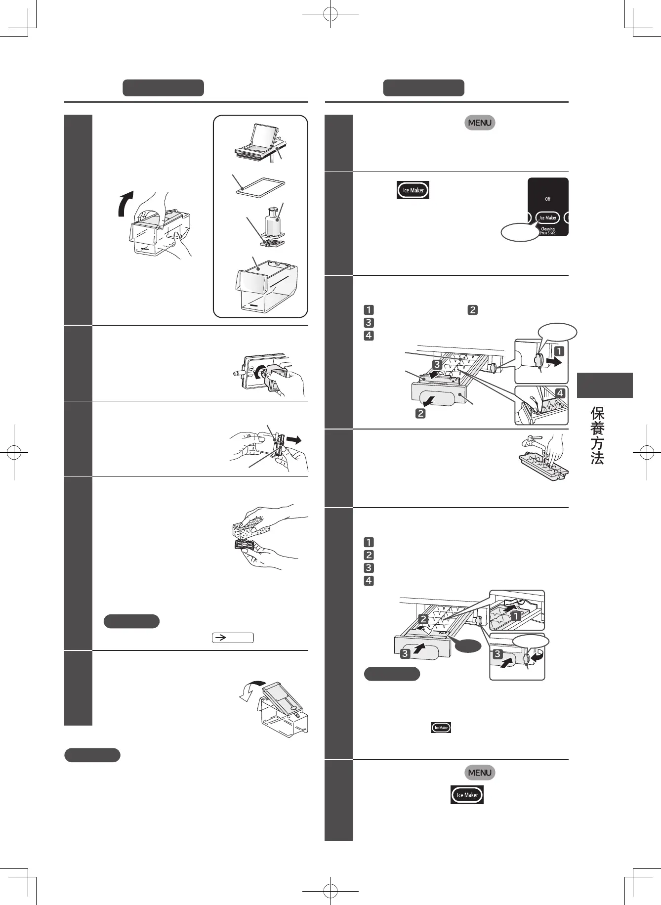 一旦卸除製冰盤,只將框架推入。關上製冰室門