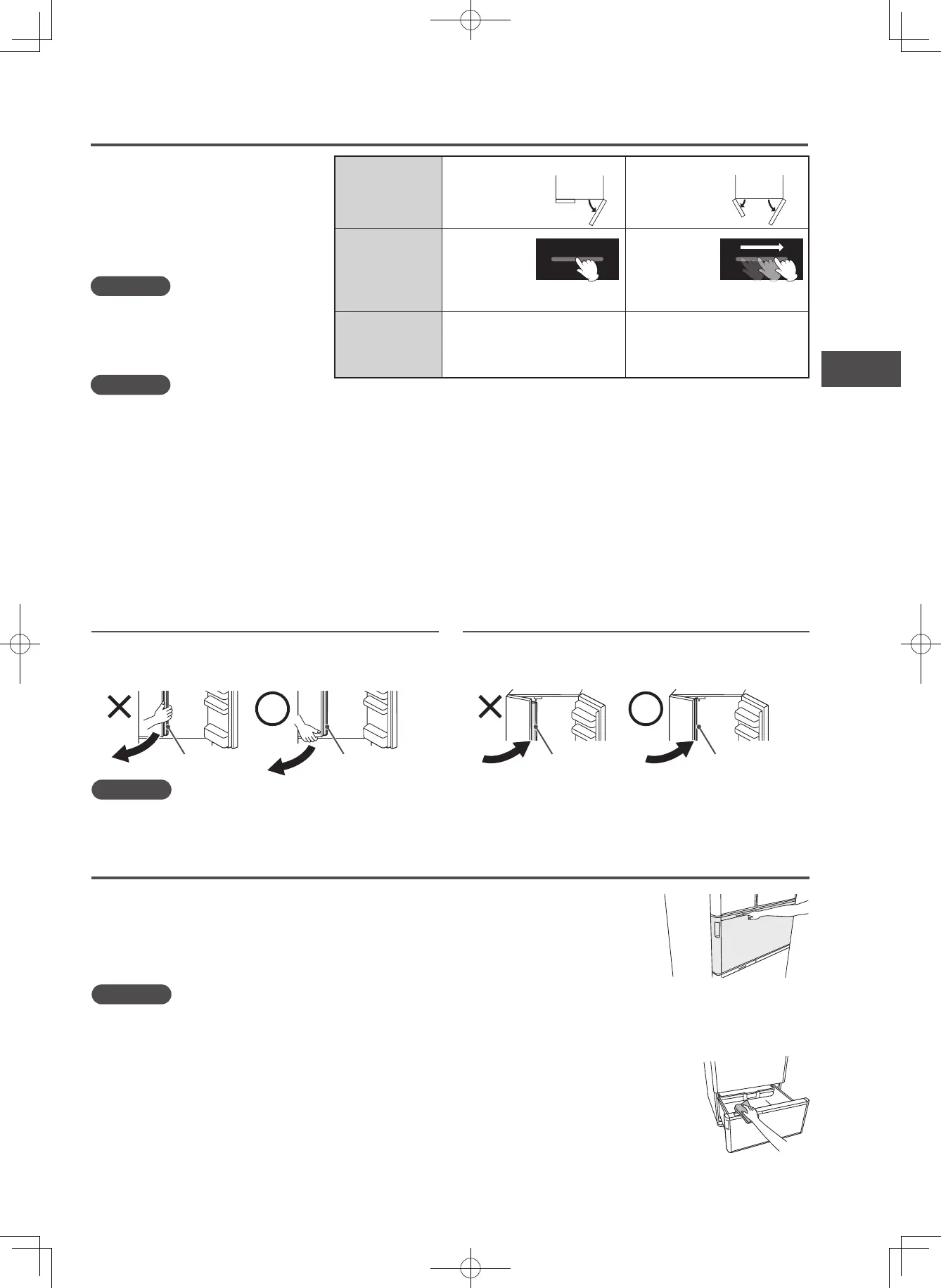 ● Hold the right and left handles with your hand to pull the drawer out while the Auto Drawer function is disabled.