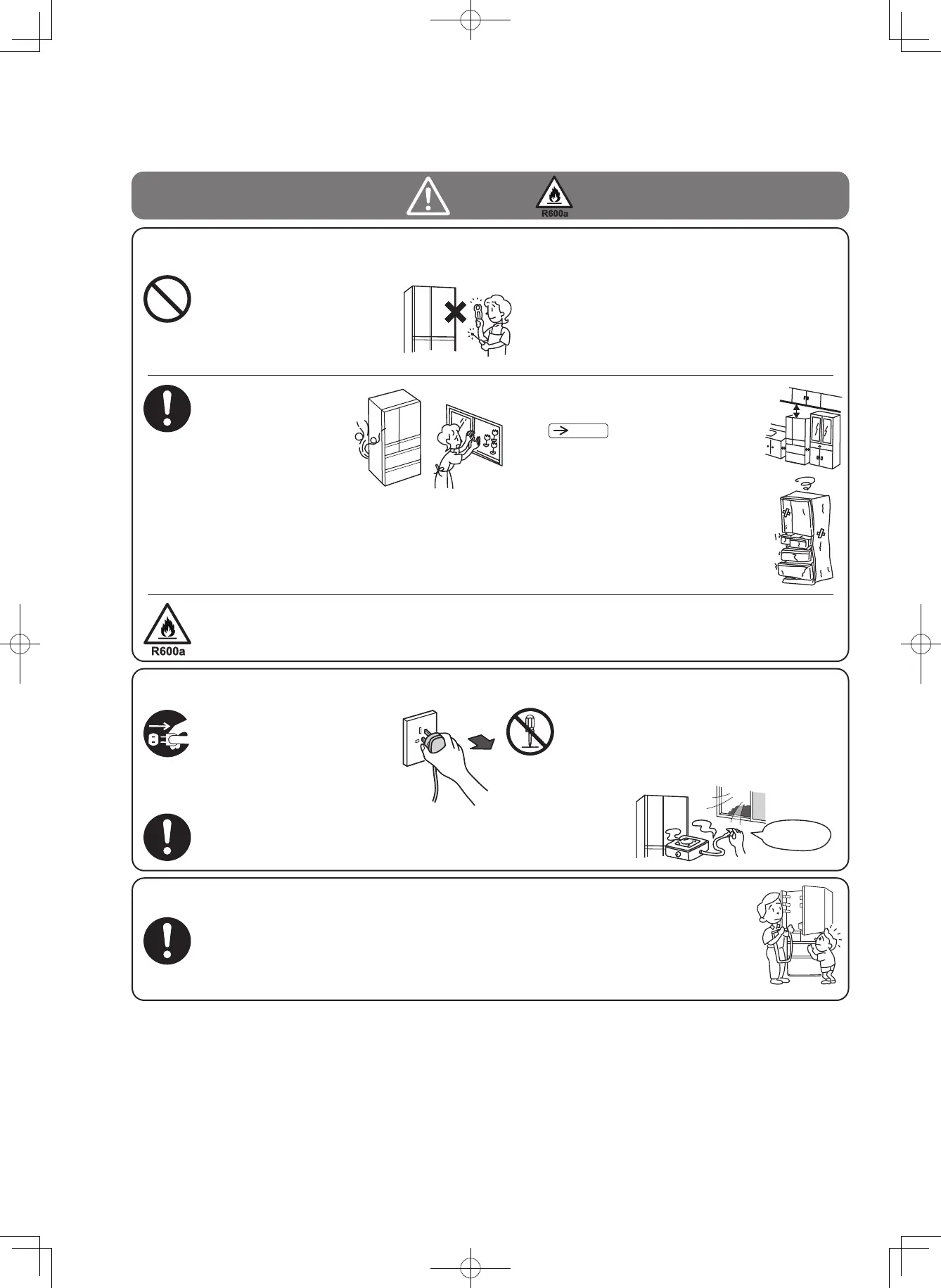 可燃性氣體外漏時,勿接觸冰箱,請立即開啟窗戶進行換氣。