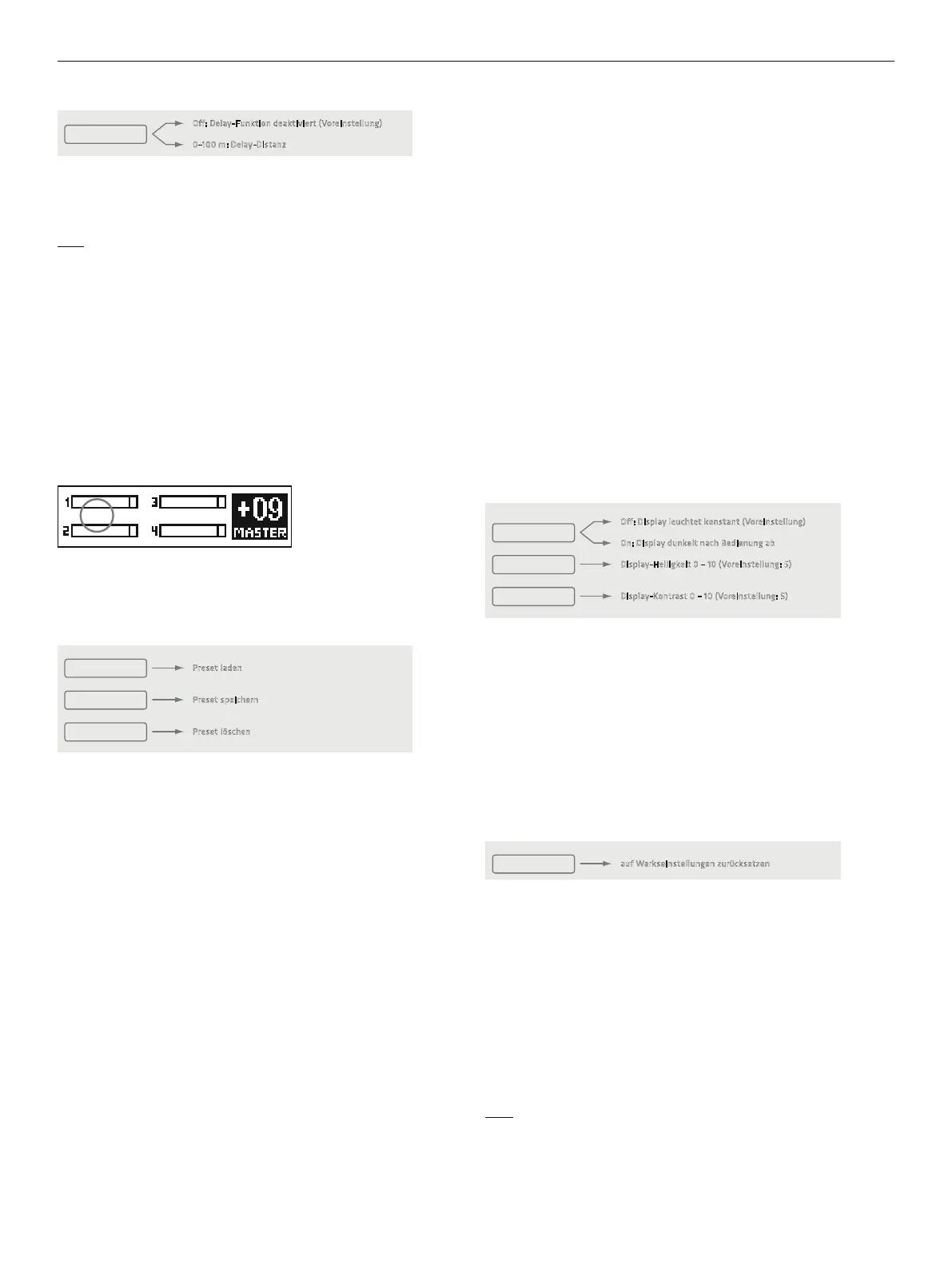 Save: Ist "Save" ausgewählt, wird mit Drücken auf Master das Preset