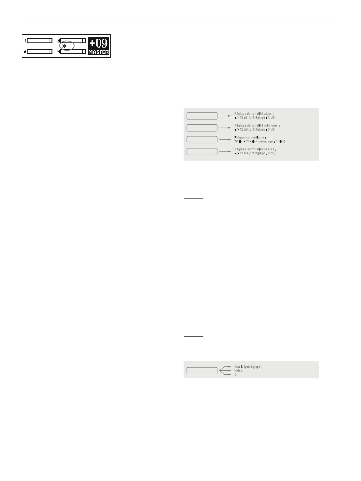 correction des médiums. Plage de fréquences: 70Hz – 12kHz