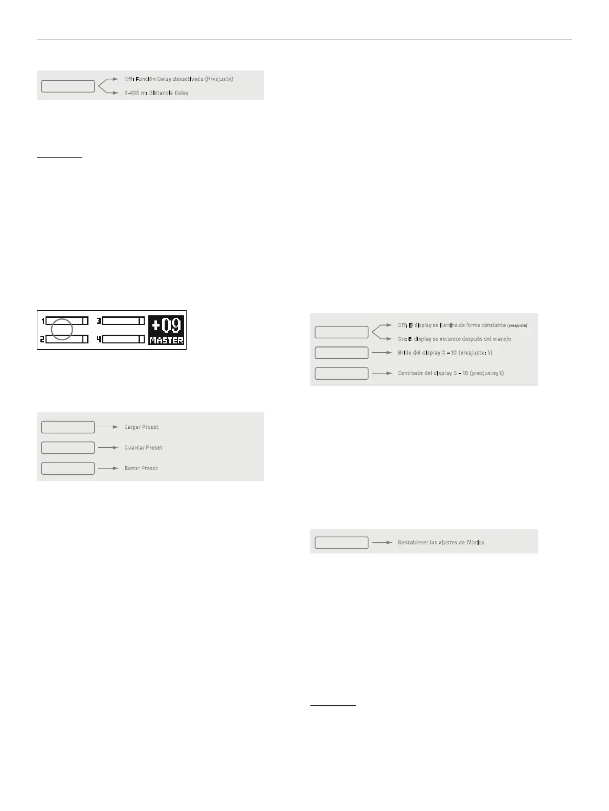 das en el menú DSP (Mode, EQ de 3 bandas, Delay, brillo del display, etc.).