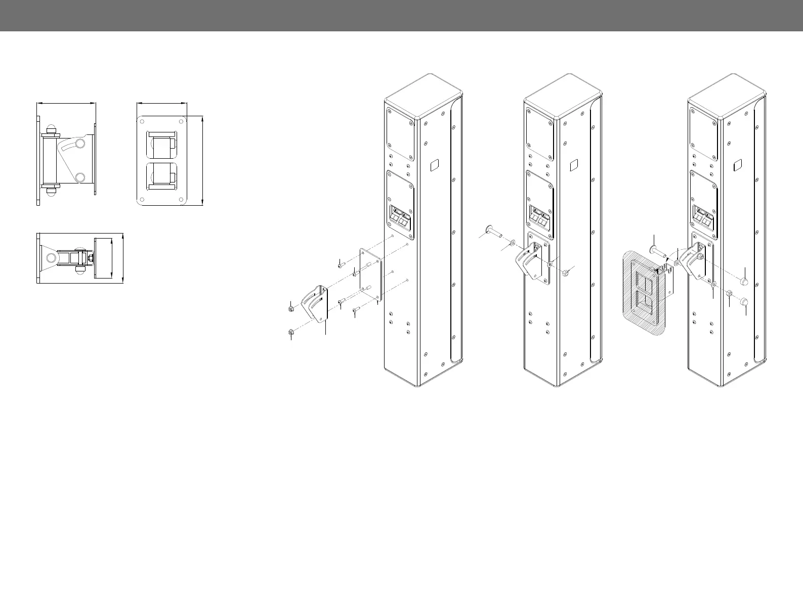 1.) Attach the adapter plate to the speaker cabinet. The four M5