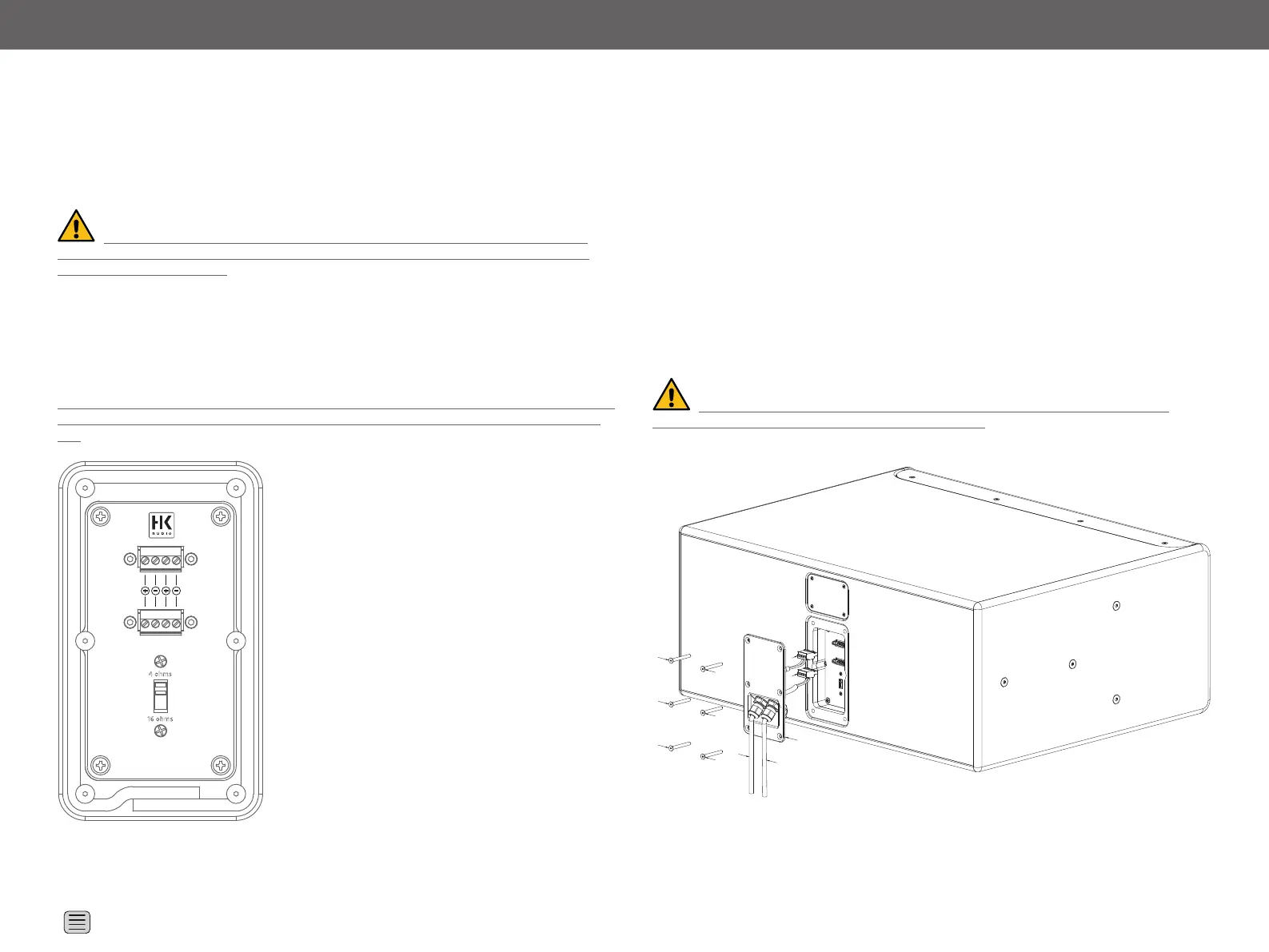 Before starting the cabling, the speaker cable (not yet stripped) must be pushed through the
