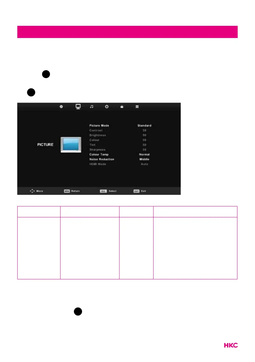 om het OSD menu te openen. Druk dan op om het ‘PICTURE’