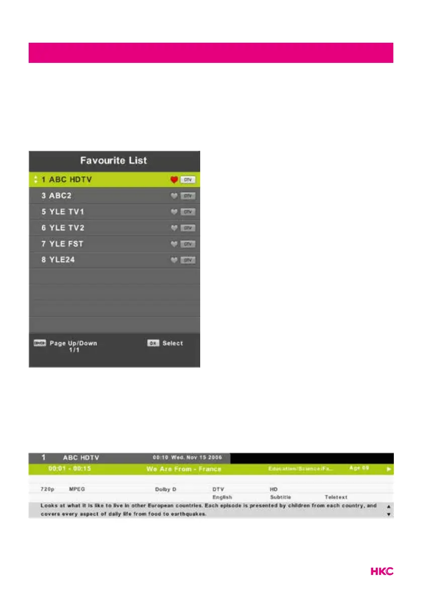 Wanneer de bron is geselecteerd als DTV, kunnen gebruikers de favoriete zen-