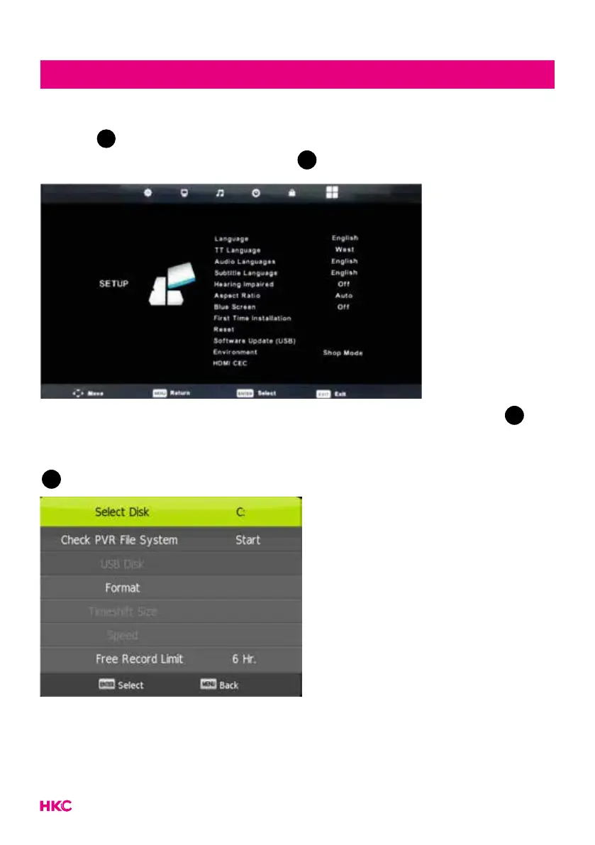 U selecteert met de knoppen ‘PVR File System’. Druk vervolgens op