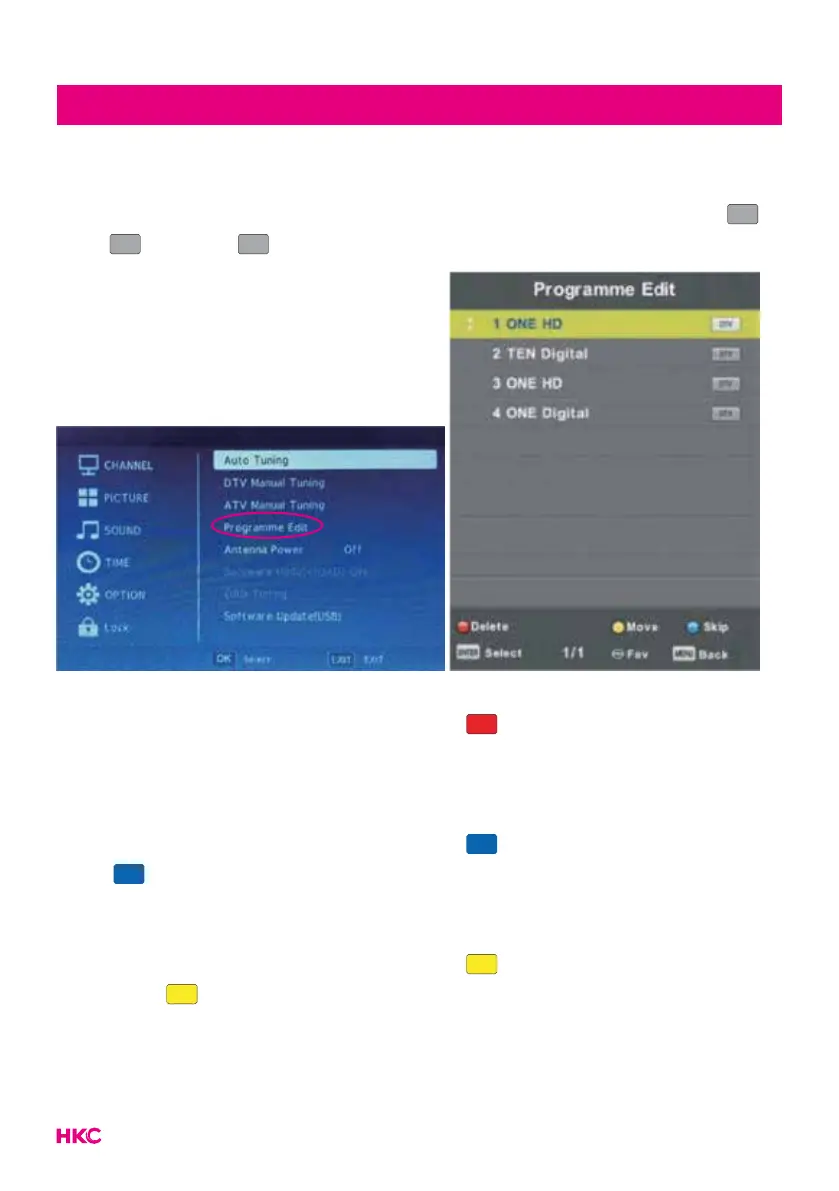 Press to select ‘Programme Edit’ in the menu. Conrm selection with