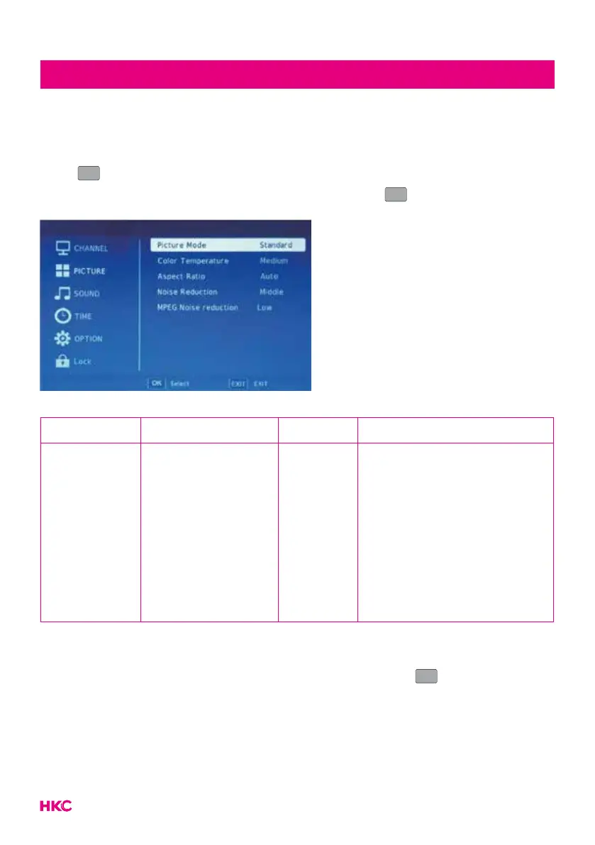 menu. Press to select ‘Picture Mode’. Then press