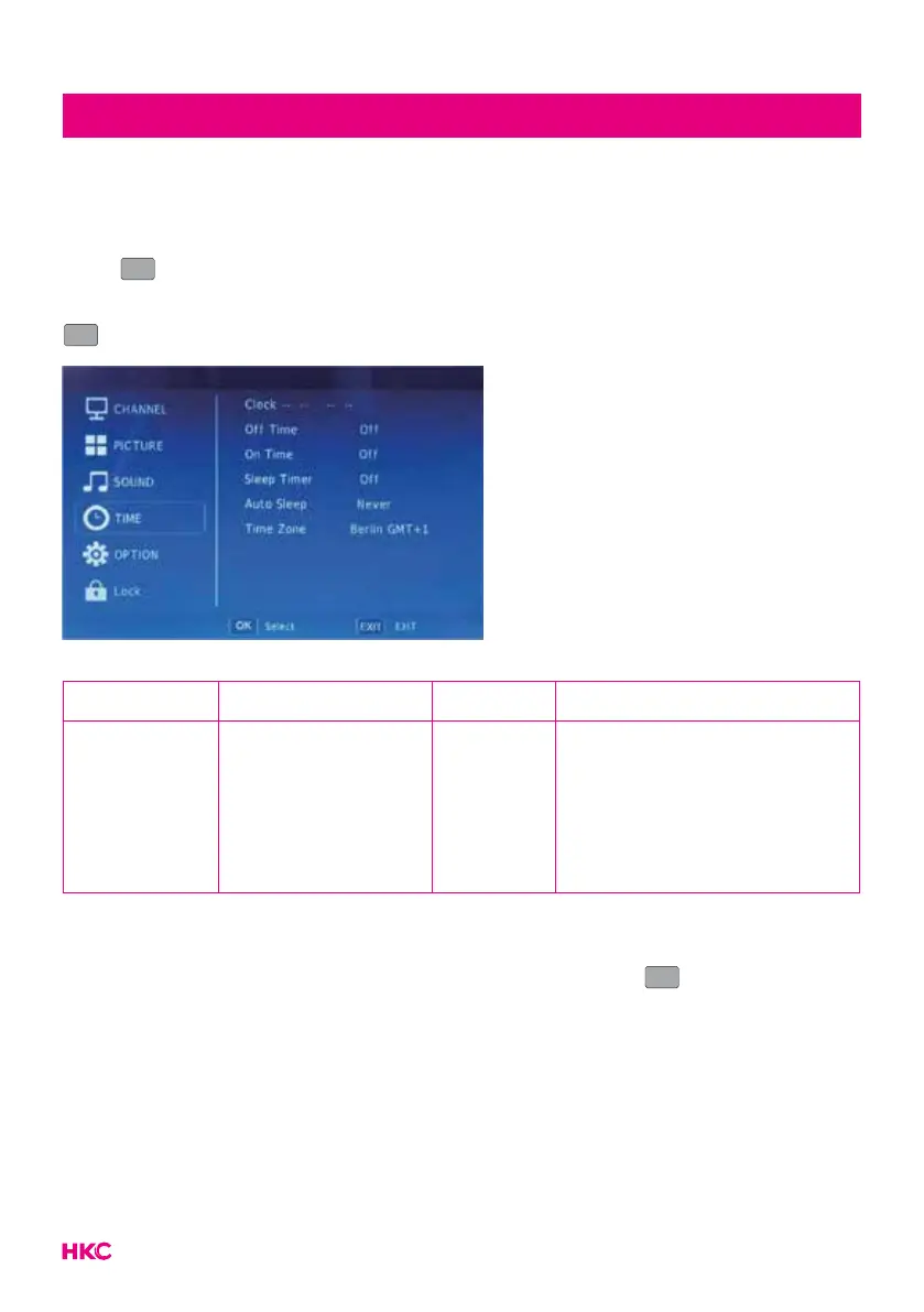 to enter the OSD menu. Then press to select the ‘TIME’ menu.