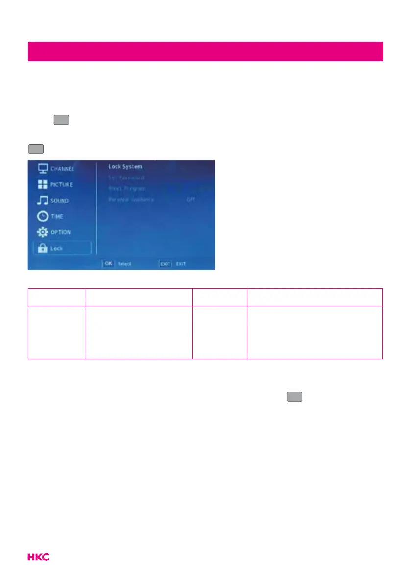 to enter the OSD menu. Then press to select the ‘LOCK’ menu.