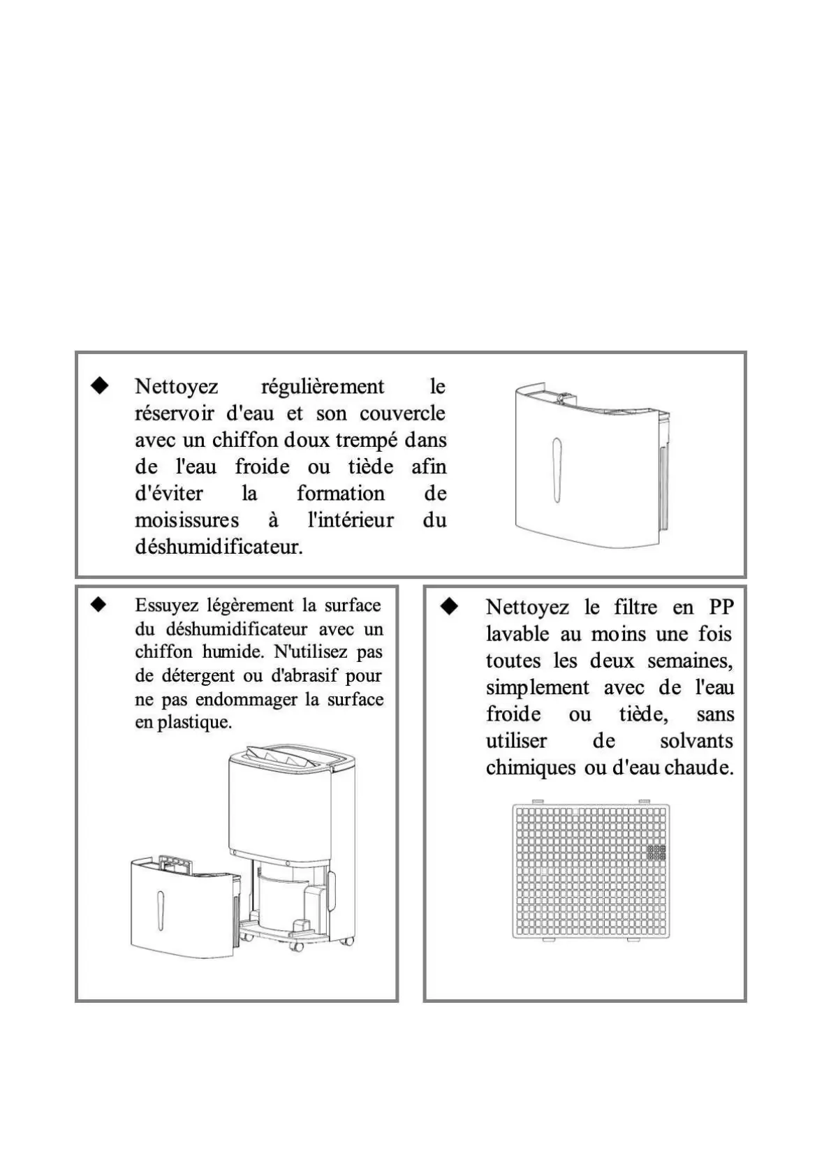 Ne nettoyez pas le corps du déshumidificateur avec des solvants chimiques