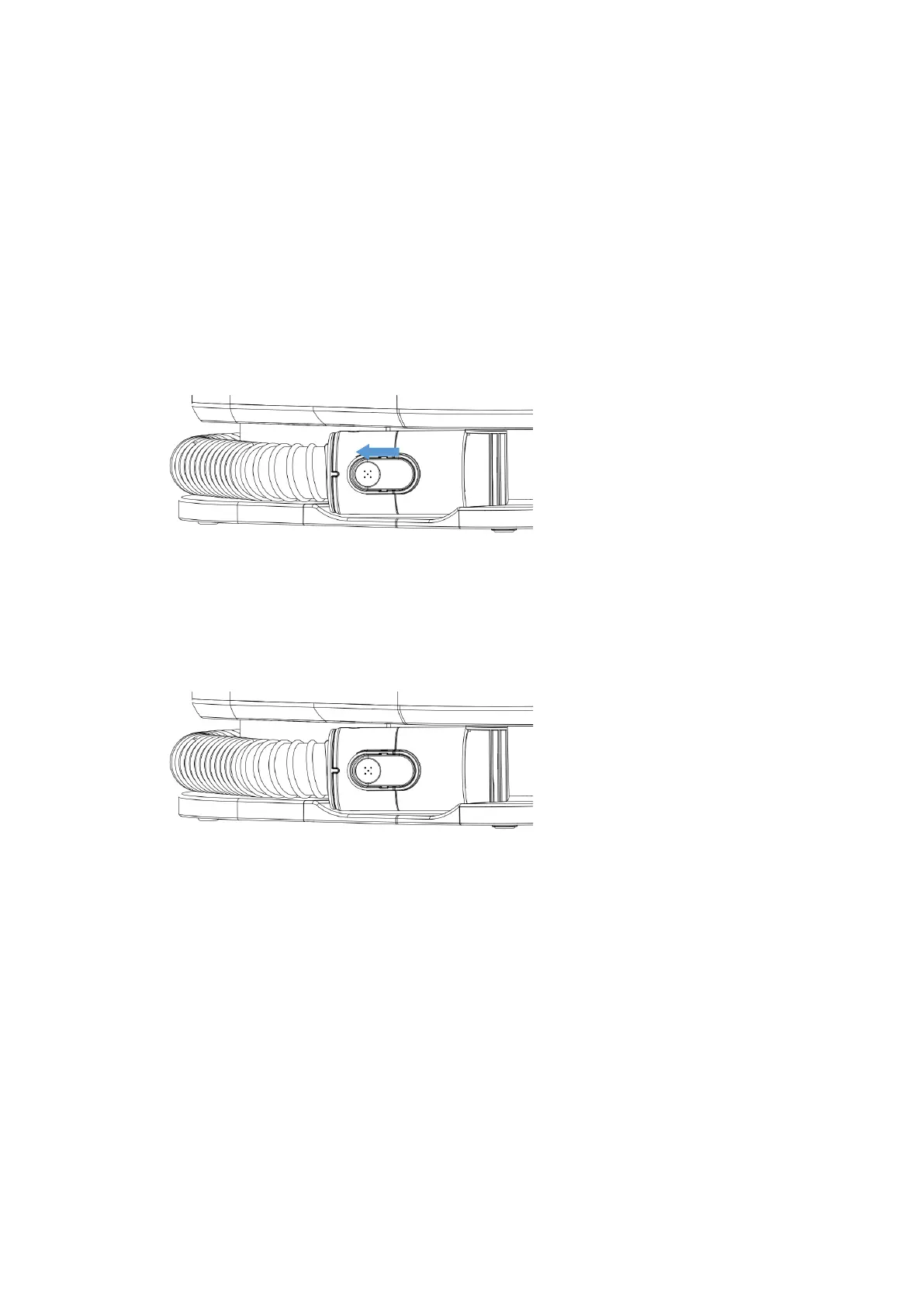 pouce et le retirer légèrement dans le sens de la flèche (une fois le nettoyage à la vapeur terminé, le tuyau ne peut