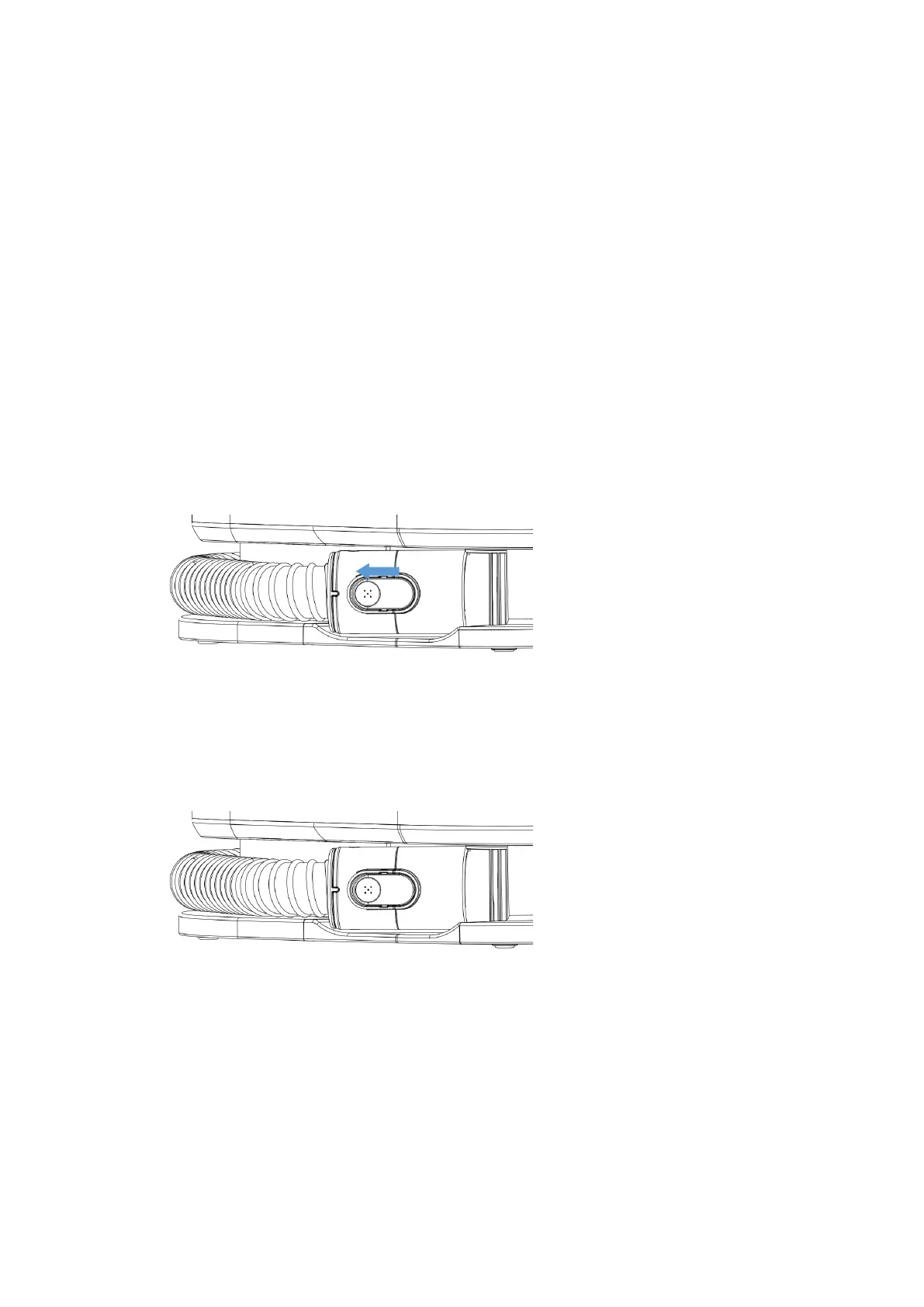 Hose disassembly: Hold the hose near the connector with your hand, press the hose lock with your thumb, and pull